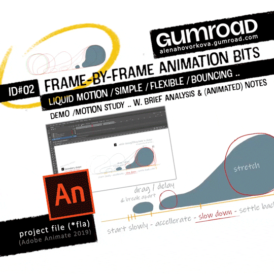 FRAME BY FRAME ANIMATION BITS /#02 /Simple Liquid Motion /Bouncing Fluid (*fla project file)